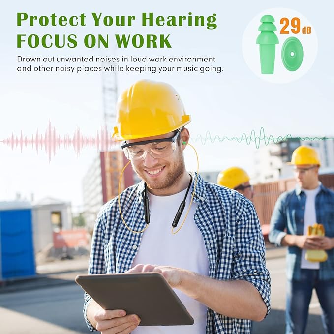 - Great Noise Protection: With a 29 dB noise reduction rating, these Bluetooth earplugs protect your ears from hazardous noise while allowing you to enjoy music. The Bluetooth design eliminates the need for a long wire to your phone or music player