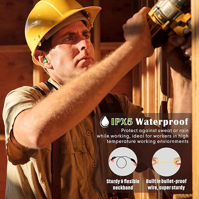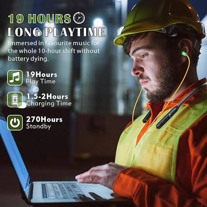 - Up to 19 Hours Playtime: The powerful rechargeable battery offers up to 19 hours of continuous music or calls on a full charge, perfect for long shifts. Ideal for workers on-site for more than 8 hours