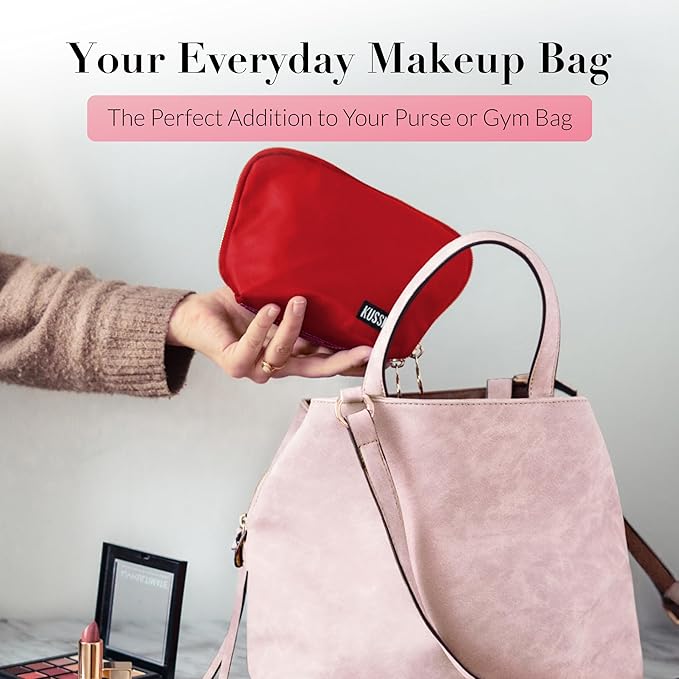 KUSSHI Washable Travel Makeup Bag for Purse (Everyday, Candy Apple Red/Pink)