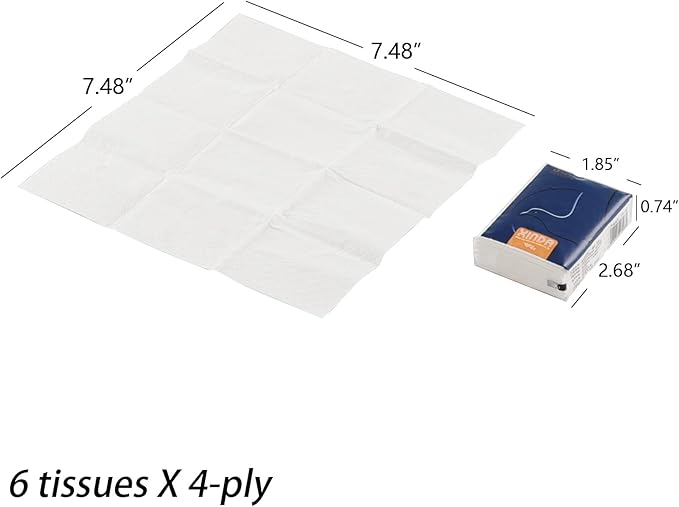- Size of each pocket tissue: 2.68" x 1.85" x 0.74"