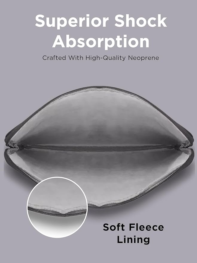 - Superior Shock Absorption: Crafted with high-quality neoprene, our sleeve offers exceptional shock absorption, safeguarding your laptop from accidental bumps and impacts. The soft, anti-scratch fleece lining adds an extra layer of protection, keeping your device in pristine condition.