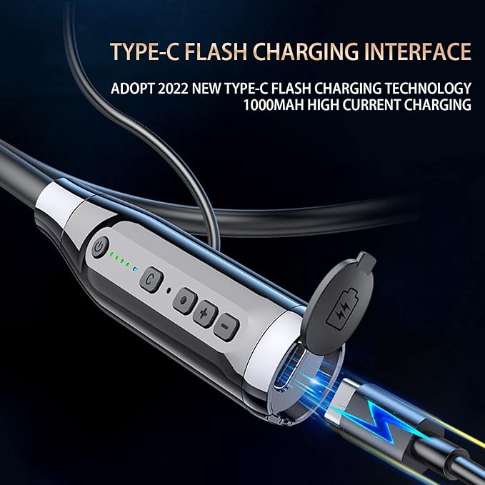 - Fast Charging -- Wireless earbuds with neckband, using TYPE-C fast charging interface, the product supports high-current fast charging function, supports four-grid power display, can be used for 10 hours after 10 minutes of charging, and is fully charged in about 1.5 hours.