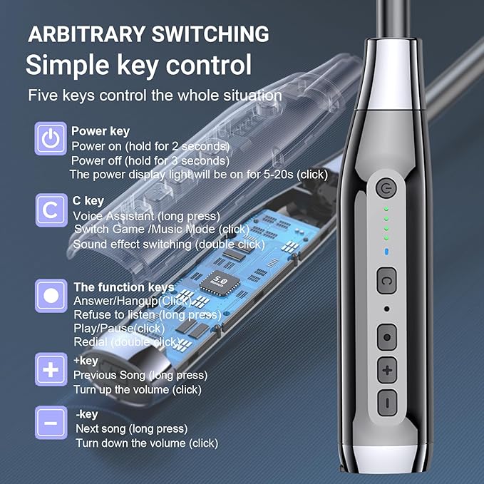 - High-Quality Sound-- The bluetooth headphones with neckband, 4 moving coil speakers, Support game low-latency mode, support three sound effects switching.