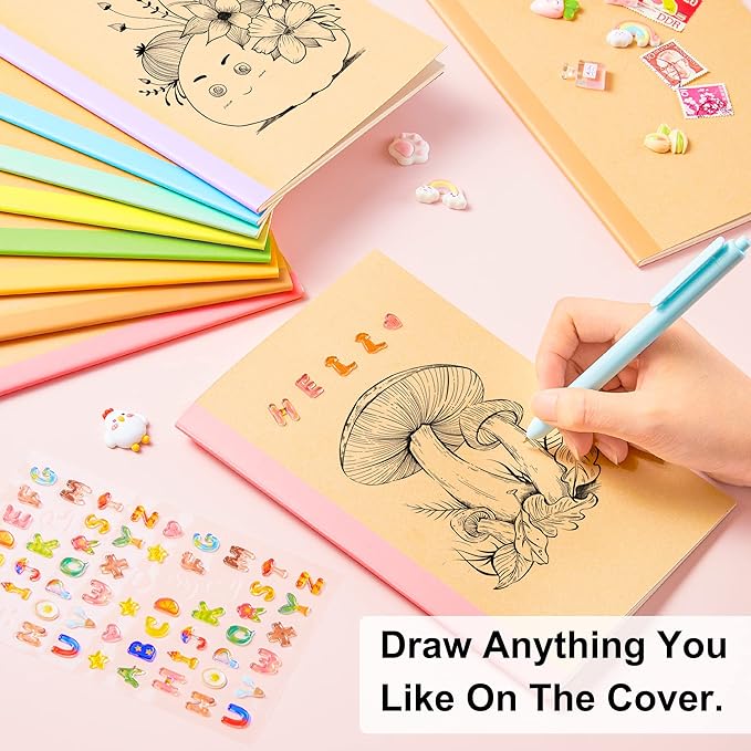 - Feela Composition Kraft Notebooks contain 56 kraft cover notebooks with rainbow spines of 8 different pastel colors. There are 7 notebooks of the same color. Each of them measures 8.3” x 5.5”, which is easy to carry in bag and easily held by students.