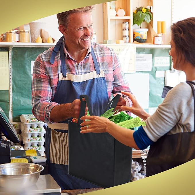 Reginary Reusable Totes Bags - 100 Pcs Non Woven Grocery Handle Bags for Shop Events & Retail Store(Black)