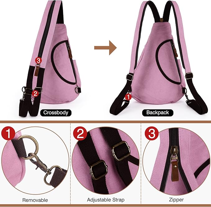 HuxFam Canvas Sing Bag for Women Crossbody Bags Backpack Purse Rucksack Small Casual Daypack