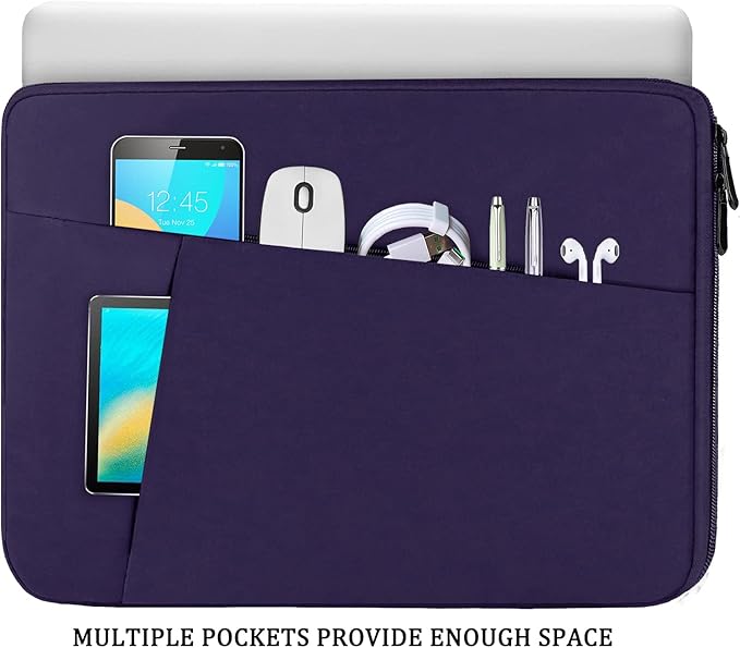 - EXTRA STORAGE SPACE: Extra two pocket in front for additional storage such as charger, power adaptors, external hard drive, earphone, cables, Portable Mouse, Keys, Cards, Pens, Cell Phone and other accessories etc. This protective carrying sleeve case bag with pocket is ideal for you to take your laptop notebook computer out.