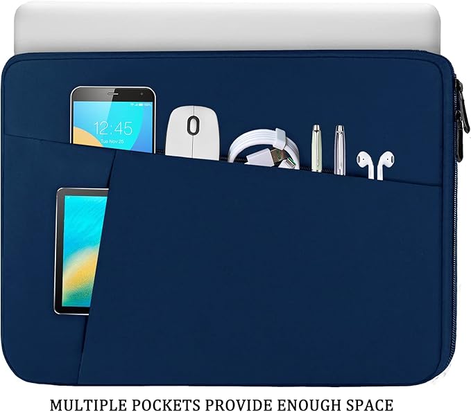 - EXTRA STORAGE SPACE: Extra two pocket in front for additional storage such as charger, power adaptors, external hard drive, earphone, cables, Portable Mouse, Keys, Cards, Pens, Cell Phone and other accessories etc. This protective carrying sleeve case bag with pocket is ideal for you to take your laptop notebook computer out.