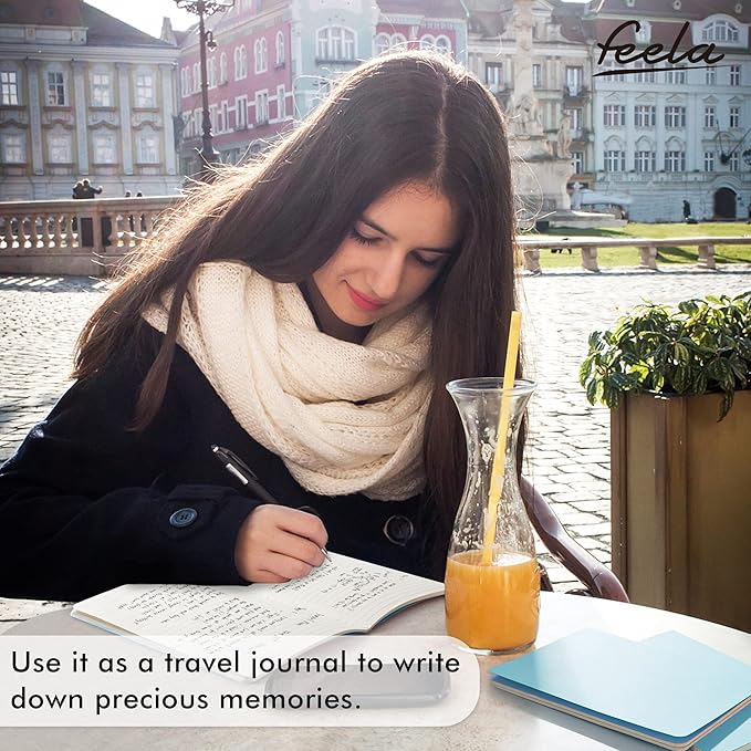- Feela 8 Pack Soft Cover Journals include 8 light blue A5 college ruled soft cover travel journals. 250 GSM colored paper cover outside and 80 GSM smooth writing lined pages inside.