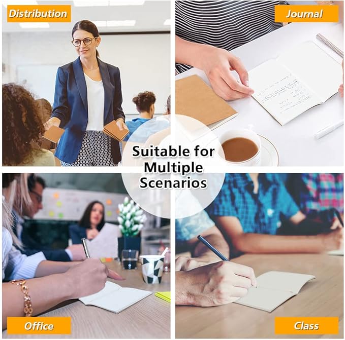 - Feela Kraft Notebooks contains 170 Brown unlined kraft cover blank notebooks. Each of them measures 4.25” x 5.5”, which is perfect to carry in bag and easily held by hand.