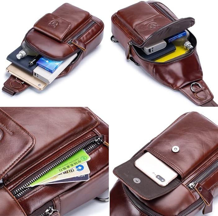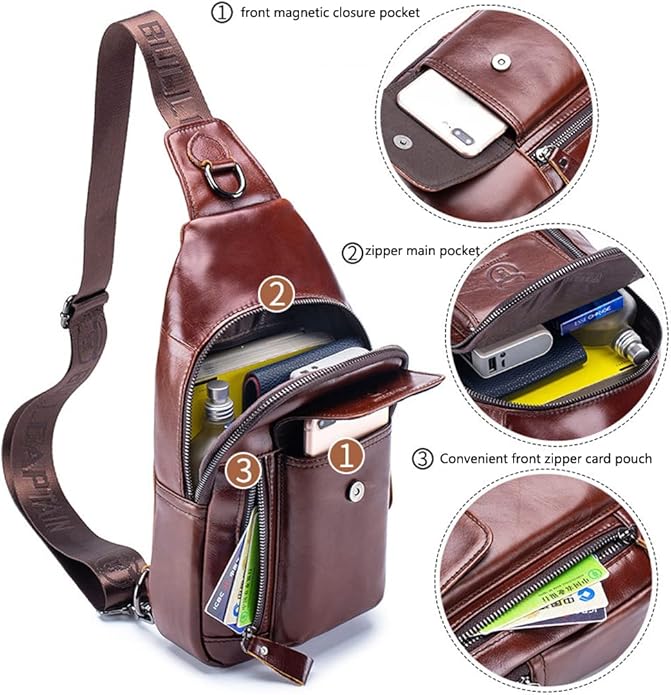 - 【Designed for comfort】 : It can be used as a Chest Pack, Business Leather Bag, Casual Sports Sling Bag, Single Shoulder Bags, Messenger Bag, Travel bag, Leather Golf Bag, Handbags etc.Adjustable cross-body shoulder strap with release clip.Satchel strap is adjustable and can be left or right shoulder, fit both regular and plus-size person. This stylish sling bag can be used as a chest bag and shoulder bag.