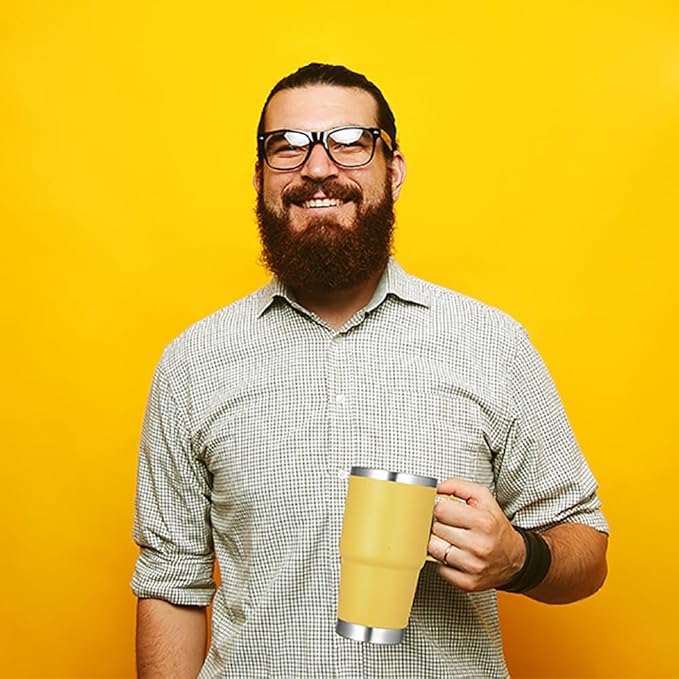 - Stainless Steel Tumblers with Handle: Made of 304 18/8 stainless steel,it won't retain or transfer flavors with the electro polished inside and also sweat proof with colorful powder coating outside. 360-degree welded handle gives you a firm grip on your beverage