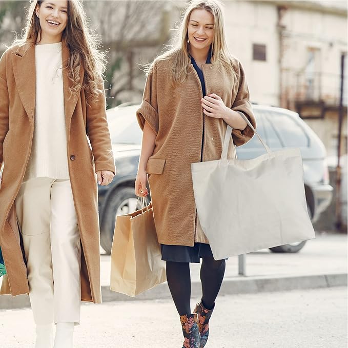 - Long Handles Canvas Totes -- 60cm/24'' long, enough to wear over your shoulder even in winter clothes.