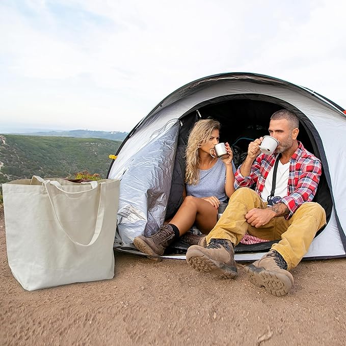 - Natural Canvas Cloth Tote -- made of sustainable 12Oz canvas, koolmox canvas totes are reusable and useful to save planet from plastic.
