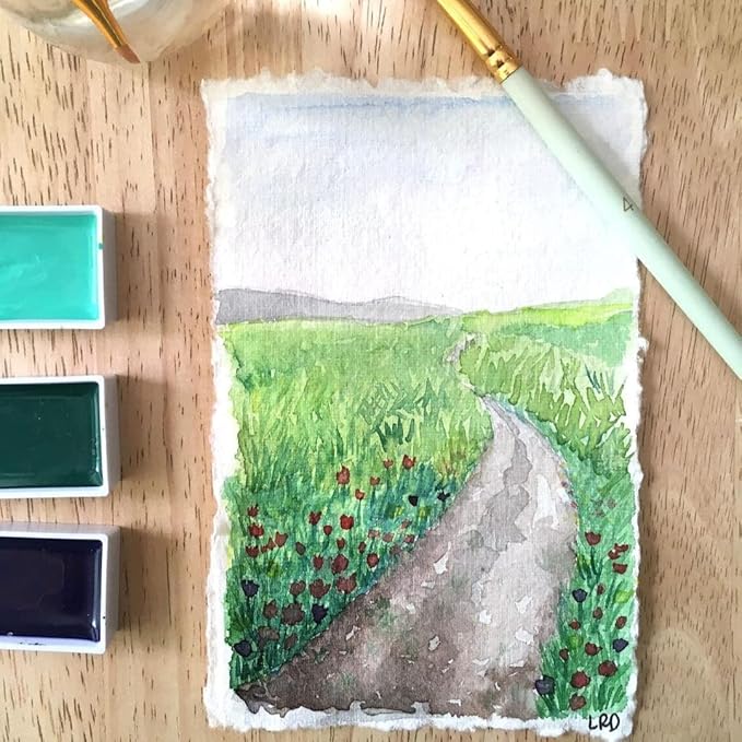 50 Sheets - Rough/Textured Watercolor Paper - 6 X 4 inches(150GSM) - Handmade/Deckle Edge Paper Made from Virgin Egyptian Cotton - Off-White by Leather Village