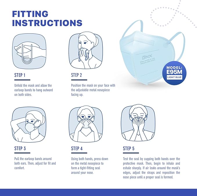 - [Latex Free Ultimate Comfort and Fit] Features latex free and amazingly soft and durable ear-loop bands as well as an adjustable metal nose piece to ensure a tight yet comfortable seal. Please follow all recommended fitting instructions and guidelines to ensure proper fit and protective seal. Flat fold design allows for convenient storage prior to use. Improved 3D design provides room for your mouth to move when you speak and reduced fog on glasses.