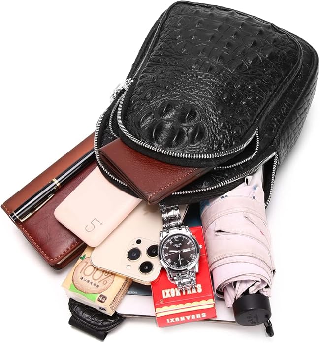 - 【Designed for comfort】 : Unique crocodile embossing pattern sling backpack, It can be used as a Chest Pack, Business Leather Bag, Casual Sports Sling Bag, Single Shoulder Bags, Messenger Bag, Travel bag, Leather Golf Bag, Handbags etc.Adjustable cross-body shoulder strap with release clip.Satchel strap is adjustable and can be left or right shoulder, fit both regular and plus-size person. This stylish sling bag can be used as a chest bag and shoulder bag.