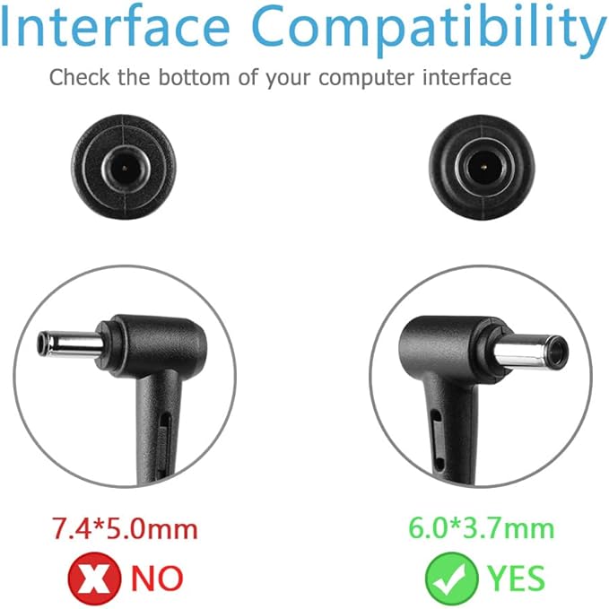 - [Package includes]1 x AC Adapter&1 x US power cord(Tips: Before ordering, please check carefully whether your original adapter's output power is compatible, If the output power is the same, then it can be compatible your laptop!)