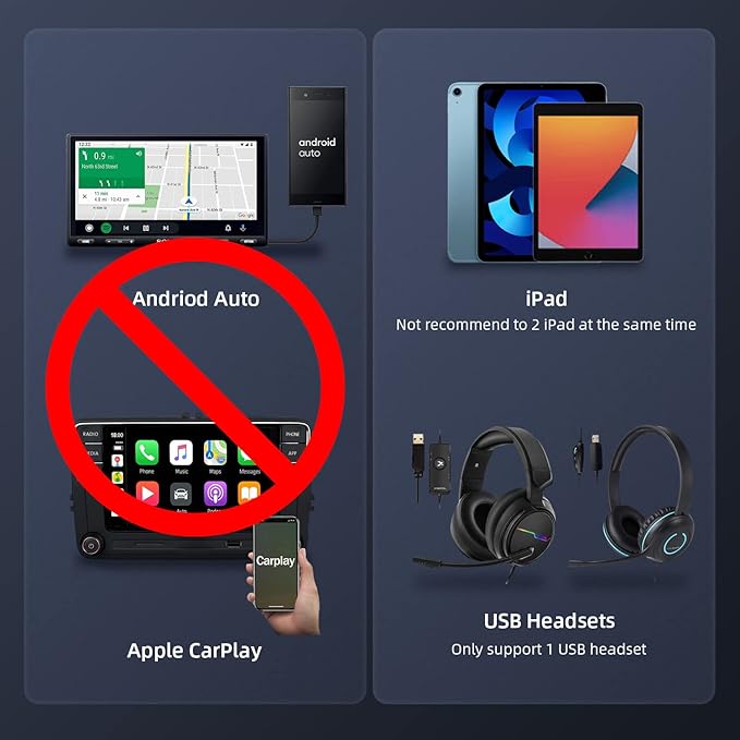- Note: USB cable splitter does not support for car audio, Andriod Auto or Apple CarPlay.