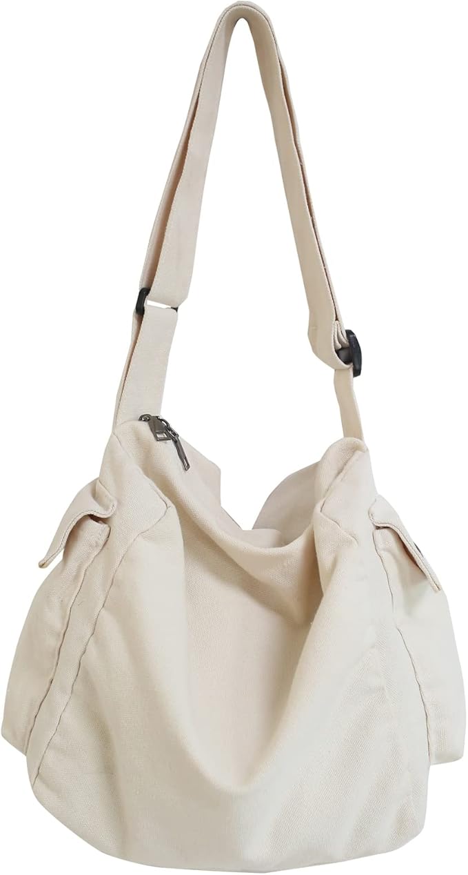 KlaOYer Canvas Messenger Bag Large Hobo Bag Crossbody Shoulder Bag Tote Bag with Pocket for Women and Men
