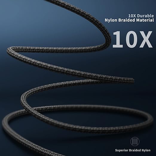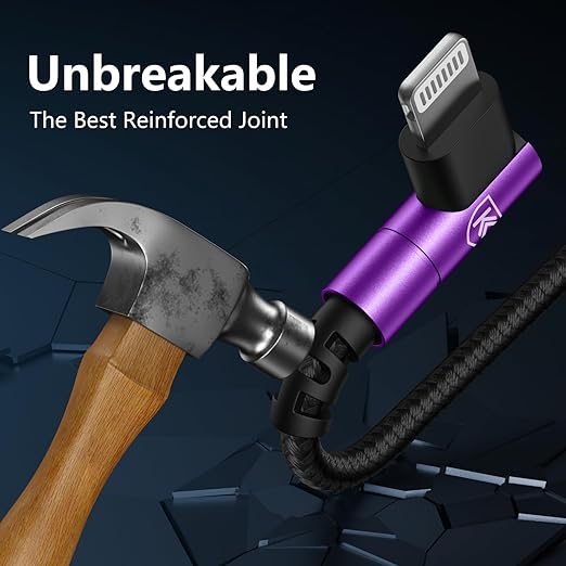 - Durable and Flexible: iPhone charging cable designed with premium materials, comes with nylon braided surface, tangle-free. It has been tested with 10,000 times bend and strong bearing capacity. 90 degree aluminium alloy connectors resist heat and corrosion, reduced the fraying and wearing of the cable joints, prolonging its life span.