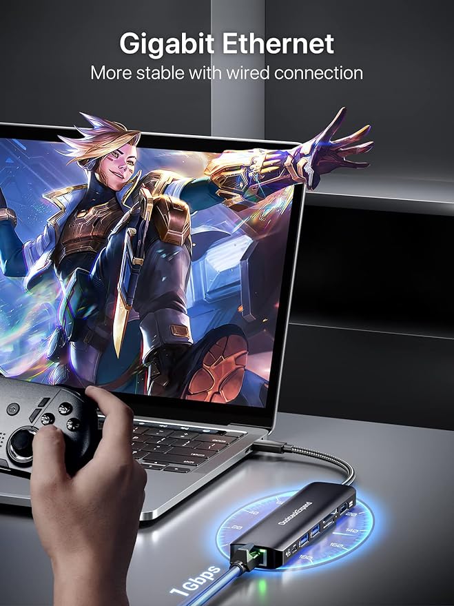 - 1Gbps ETHERNET HUB:This USB C LAN Adapter provides you with up to 1Gbps RJ45 network connection, super fast and stable
