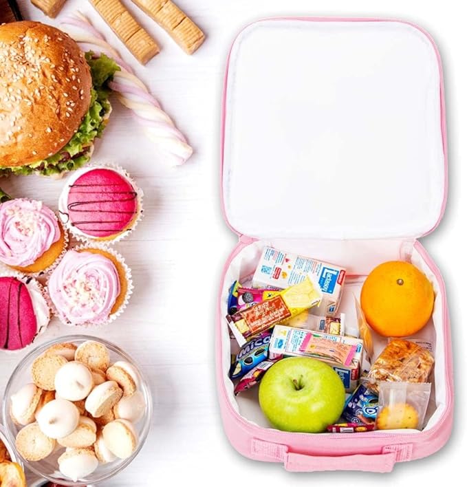 - Backpack Set Dimension: Unicorn backpack size: 16”H x 12”L x 6.5”W; unicorn lunch box size: 9.5”H x 8.5”L x 2.76”W; unicorn pencil case size: 5”H x 9”L x 0.2”W. Insulated lunch box can be used to hold fresh fruit, meal box, snacks and so on. Pencil case can hold pens, ruler, eraser and some other school essentials.