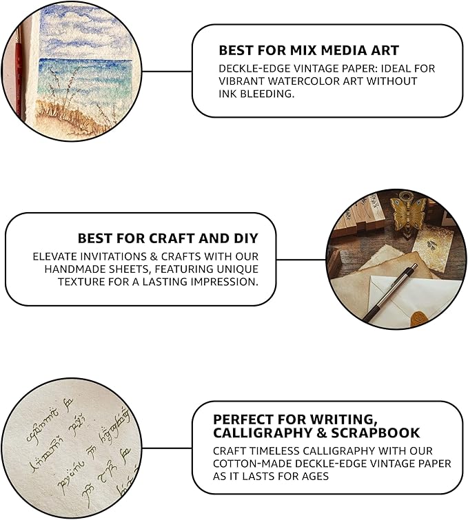 - Premium Material: Thick cotton paper that is acid-free, chemical-free and tree-free and thick. This gorgeous, handmade deckled edge paper (rough-edge) has a slightly rough texture and feels amazing.