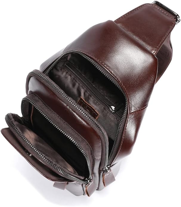 KPYWZER Vintage Leather Sling Bag Backpack for Men Crossbody Shoulder Chest Day Pack Backpacks