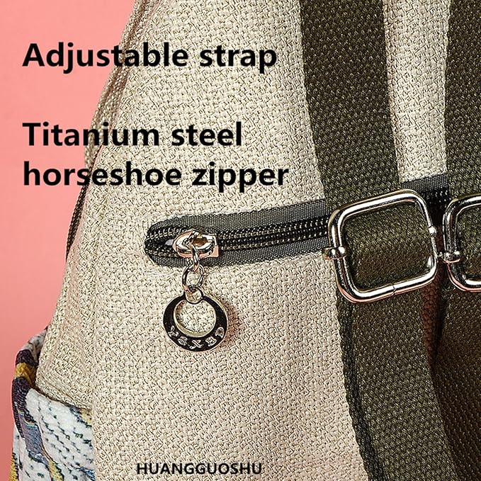 HUANGGUOSHU Women Cotton Woven Bohemian Hemp Boho Canvas Embroidery Multi Pocket Retro Cute Backpack Wallet Backpack Abstract Animal Motif