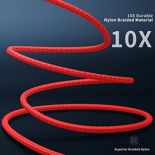 - Durable and Flexible: iPhone charging cable designed with premium materials, comes with nylon braided surface, tangle-free. It has been tested with 10,000 times bend and strong bearing capacity. 90 degree aluminium alloy connectors resist heat and corrosion, reduced the fraying and wearing of the cable joints, prolonging its life span.
