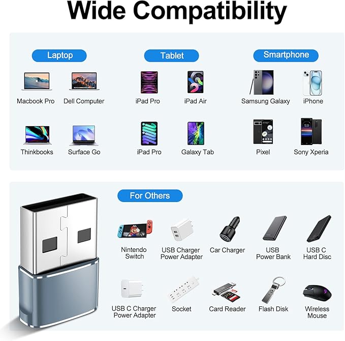 πππππ€ ππ©π π«ππππ USB to USB C Adapter,Type-C Female to A Male Car Charger OTG Converter for Apple Watch Ultra 8 9 10,iPhone 16 15 14 13 Pro Max,Samsung S24,Nintendo Switch,AirPods,iPad,Car