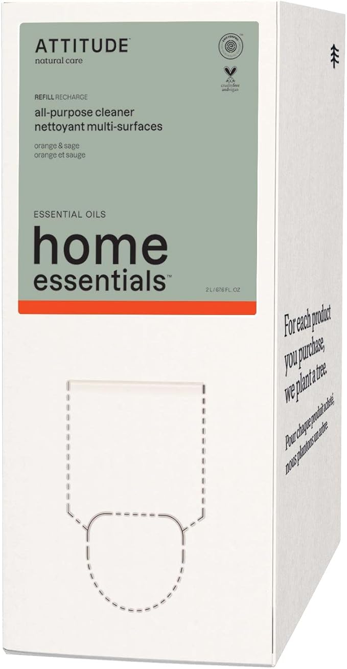 ATTITUDE All Purpose Cleaner, EWG Verified Multi-Surface Products, Vegan, Naturally Derived Multipurpose Cleaning Spray, Orange and Sage, 67.6 Fl Oz