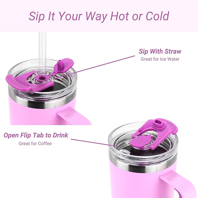 Drinco 40oz 30 oz Tumbler with Handle, Straw Lid, Insulated Stainless Steel Travel Mug Water Bottle Ice Coffee Cup For Cold and Hot, BigSur (40oz, Lavender)