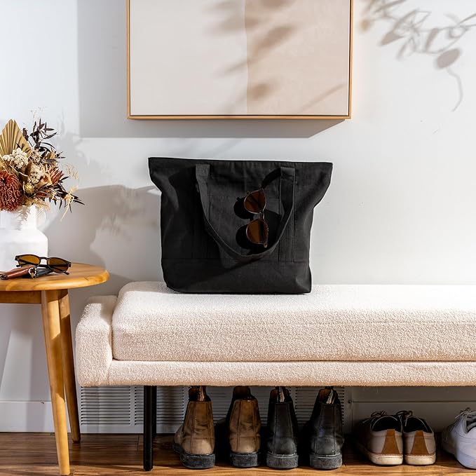 - Heavy Duty Canvas Totes : The 14.5 oz Organic Cotton Tote bag boasts a stylish canvas exterior that not only looks good but also withstands daily wear and tear. The timeless design complements any outfit, making it a fashion-forward choice.