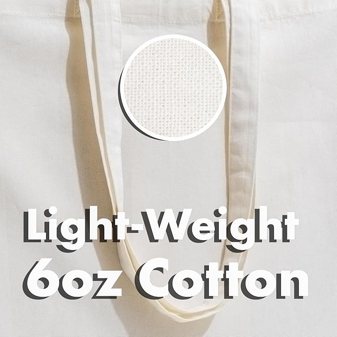 - 100% Organic Cotton Canvas Bags : For a durable tote bag that’s soft and eco-friendly too, choose our canvas bags free from synthetic materials. Our 6 oz (material weight per square meter, not the item weight) organic cotton canvas is strong enough to carry all your essentials, but due to its lightweight feel, it won’t weigh you down on the road.