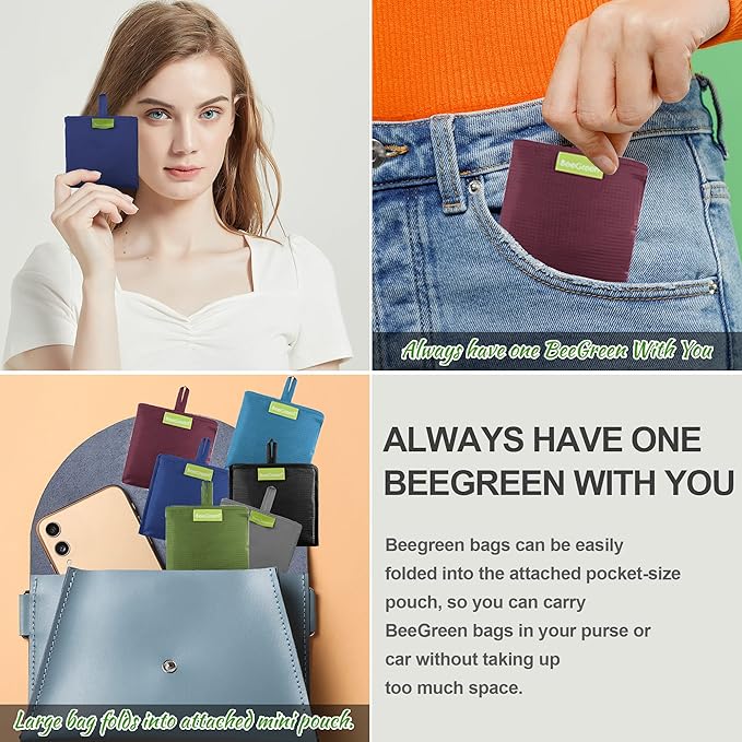 BeeGreen Reusable Bags Tote Bags for Women - 6 Pack Bulk Extra Large Reusable Gifts Bag with Handles - Heavy Duty Foldable Machine Washable Travel Grocery Bag Organizer (Packable Shopping Bags)