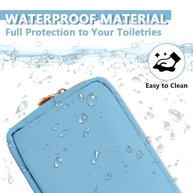 - 【High Quality Material】The cosmetic bag is constructed of lightweight and durable nylon fabric. It is waterproof and easy to clean, helping to protect your beauty, cosmetics and toiletries from water spillage accidents.It will not lose color after the wash.