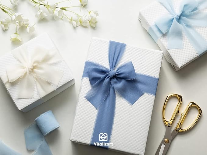 Vitalizart Blue Handmade Chiffon Silk Ribbon Fringe 1.5" x 21 Yd Dusty & Baby Blue Frayed Edges Ribbons for Wedding Invitations Bridal Bouquets Gifts Wrapping Crafts Holiday Party Decorations