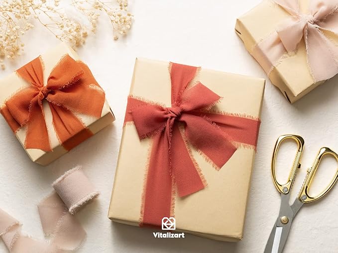 Vitalizart Fall Handmade Chiffon Silk Ribbon Fringe 1.5" x 21 Yd Terracotta Frayed Edges Ribbons for Wedding Invitations Bridal Bouquets Gifts Wrapping Crafts Holiday Party Decorations