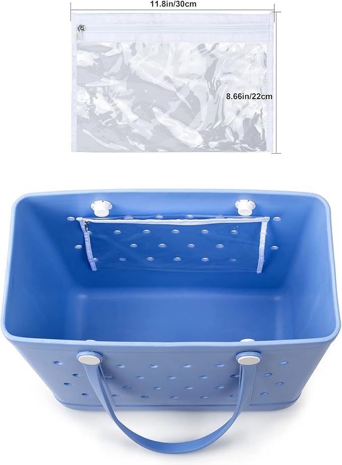 - EASY TO USE: The holes on the beach bag tote are about 10mm in diameter, so you can add your favorite decorative pendants. The rubber tote bag stands upright and will not fall over. The traction on the bottom of the beach bags prevents the rubber beach bag from slipping on wet surfaces.