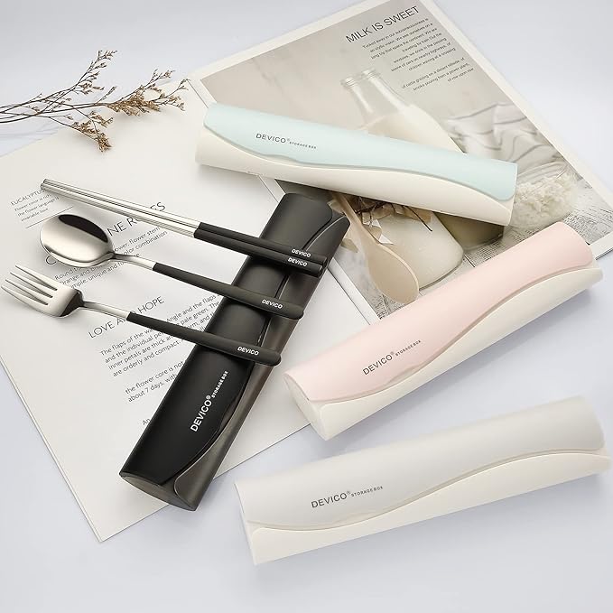 - MULTIPLE USE SCENARIOUS: This reusable utensils set with case contains 1*spoon, 1*fork, 1 pair chopsticks & 1*utensils case. You can carry this lunch utensils set for work, or as your camping utensils. This utensil sets for lunch can also be as your daily lunch utensil set, or be taken to school, dorm, restaurant, picnic