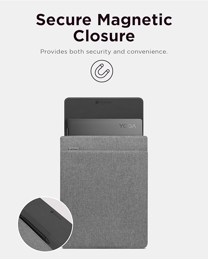 Lenovo Slim Laptop Sleeve 16 Inch Notebook/Tablet - Compatible with MacBook Air/Pro - Eco-Friendly Lightweight Case with Accessory Pocket & Magnetic Closure - Grey