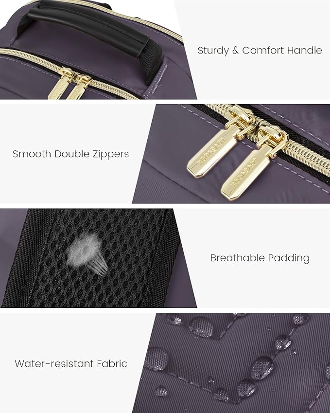 LOVEVOOK Laptop Backpack for Women, Large Capacity Travel Computer Work Bag with 17-inch Laptop Compartment, Business Nurse Backpack Purse, Hiking Outdoor Carry On Backpack, Purple Grey