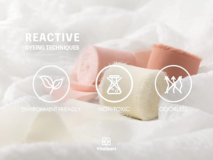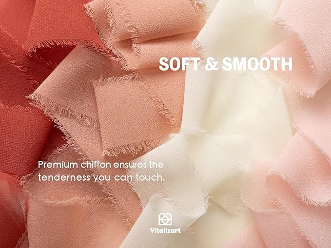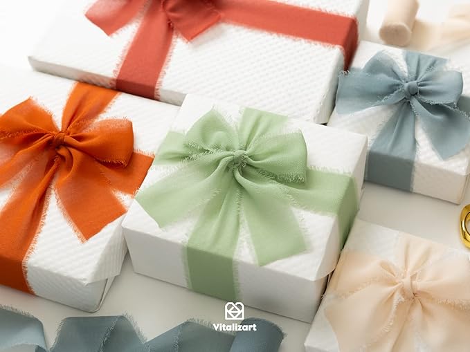 Vitalizart Chiffon Silk Ribbon 1 1/2 Inch x 75 Yd Handmade Frayed Edge Assorted Ribbons for Gift Wrapping Bridal Bouquets Baby Shower Wedding Invitations