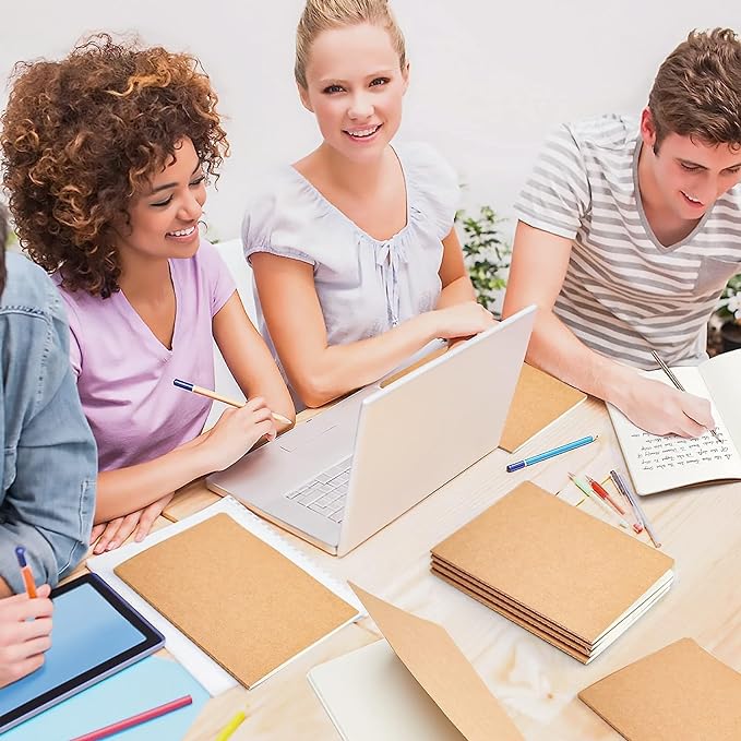 - feela Kraft Notebooks contains 8 unlined kraft cover blank notebooks. Each of them measures 8.3” x 5.5”, which is perfect to carry in bag and easily held by hand.
