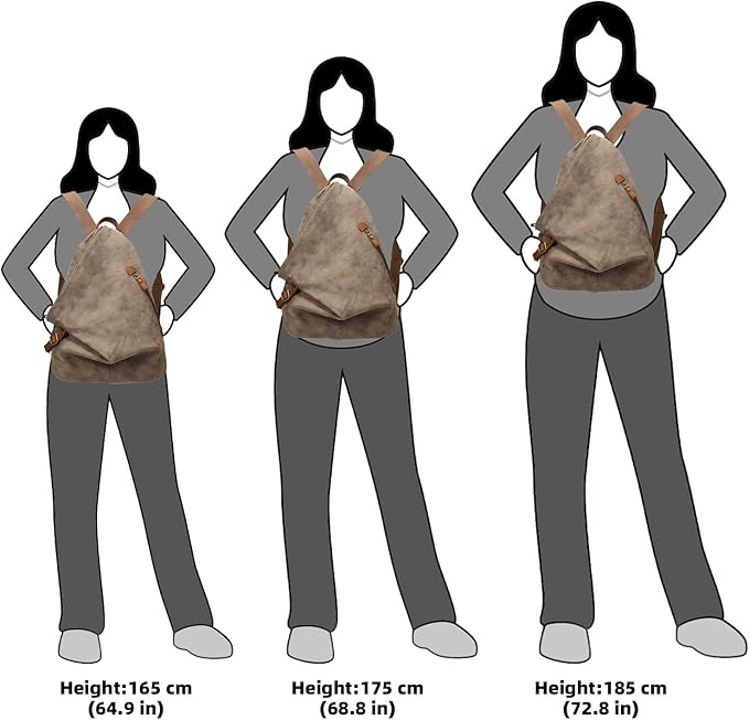 - [ROOMY] Size: 13” L x 6.7” W X 15” H, strip length 18”-36”, weight: 1.98lb, this PU large casual daypack is roomy enough for your iPads, smartphone, power banks, wallet, umbrella, water bottles, etc. Prefect for men and women to go to business, travel, shopping, dating, tourism, gym, cycling, hiking, walking, camping, etc.