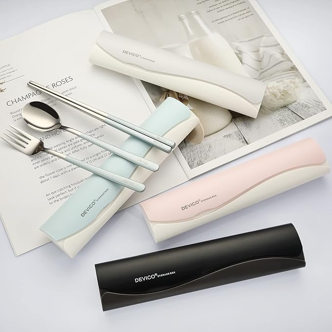 - PORTABLE UTENSIL CASE: Smooth shape, comfortable grip without cutting the hand. The double-open design of the lid, unique and elegant. Embedded buckle, lock the reusable silverware without shaking and reduce noise. Available in multiple colors, beautiful and portable
