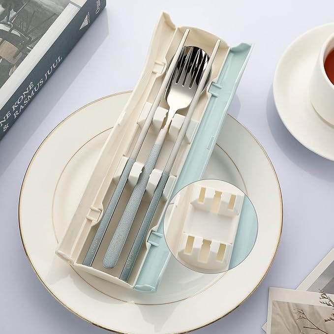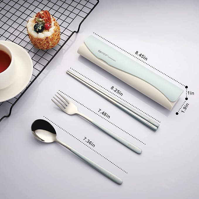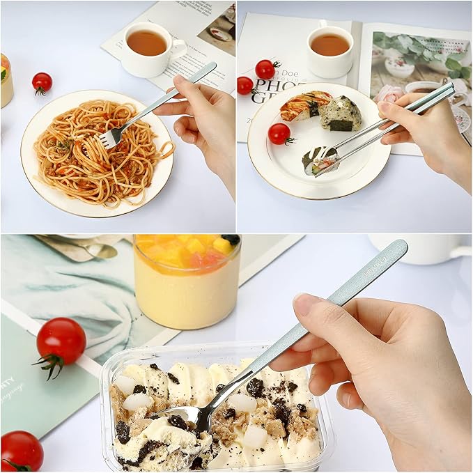 - MULTIPLE USE SCENARIOUS: This reusable utensils set with case contains 1*spoon, 1*fork, 1 pair chopsticks & 1*utensils case. You can carry this lunch utensils set for work, or as your camping utensils. This utensil sets for lunch can also be as your daily lunch utensil set, or be taken to school, dorm, restaurant, picnic