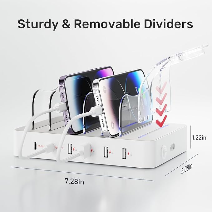 - Special Feature : 6 Devices Charging Simultaneously, Fast Charging, Removable Dividers, Total 60W, With 2 PD 20W